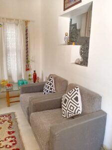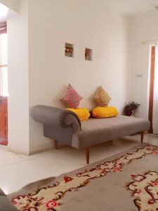 Openings are carefully sized and positioned to bring in abundant natural light while mitigating the harsh summer heat of Gandhinagar. Cavity walls are used throughout to improve thermal performance, ensuring comfortable interior spaces even during extreme weather conditions.
